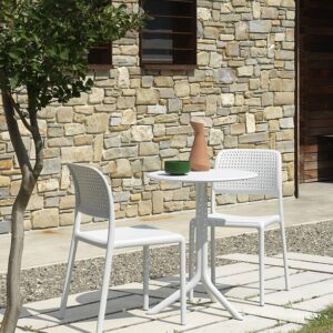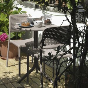 Italian manufactured, this garden suite features only high-end materials that won’t wear, go brittle, gather mold or fade easily. The table top and chair frames are made of an ultra-high grade polypropylene & fiberglass resin that provides excellent resistance to ultra-violet (UV) light and atmospheric pollutants. The legs comprise of commercial grade anodized aluminium, that means you can be sure that it won’t rust throughout the off season! The summer New Zealand sun has nothing on Italian design and engineering.