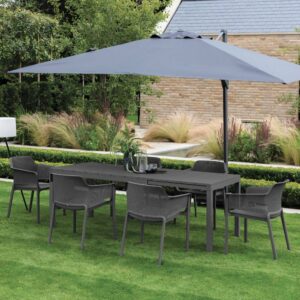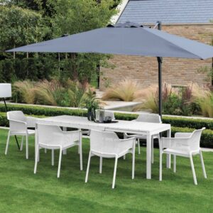 This garden patio set will look great year round without much more than a wipe down when required. Manufactured and rated to commercial standards, you can be confident of the quality of build of this patio dining set. The table measures 1400mm and sits six chairs around comfortably, with the option to extend out to 2100mm – adding room for more chairs for when you’re entertaining company on those long hot summer nights.