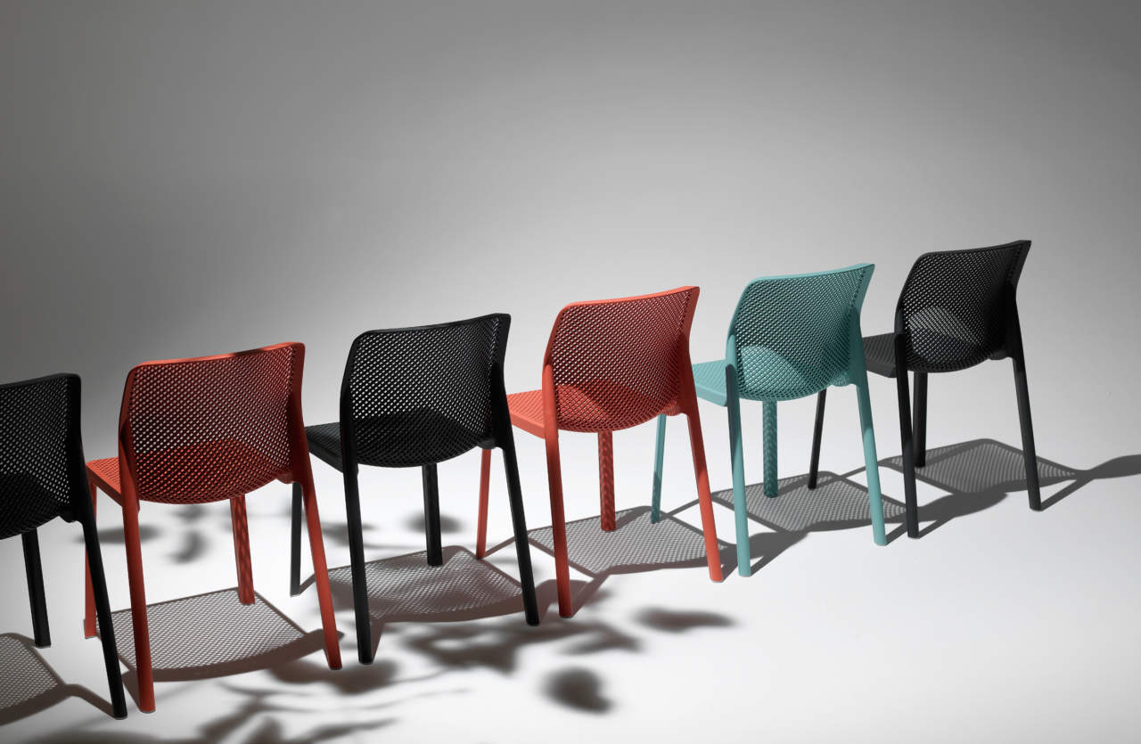 The high-end resin is batch-dyed and treated with an anti ultra-violet (UV) agent, producing collections of chairs & tables that stay vibrant in colour over time, even when they are exposed to atmospheric pollutants and salty sea air (saline) conditions for extended periods.