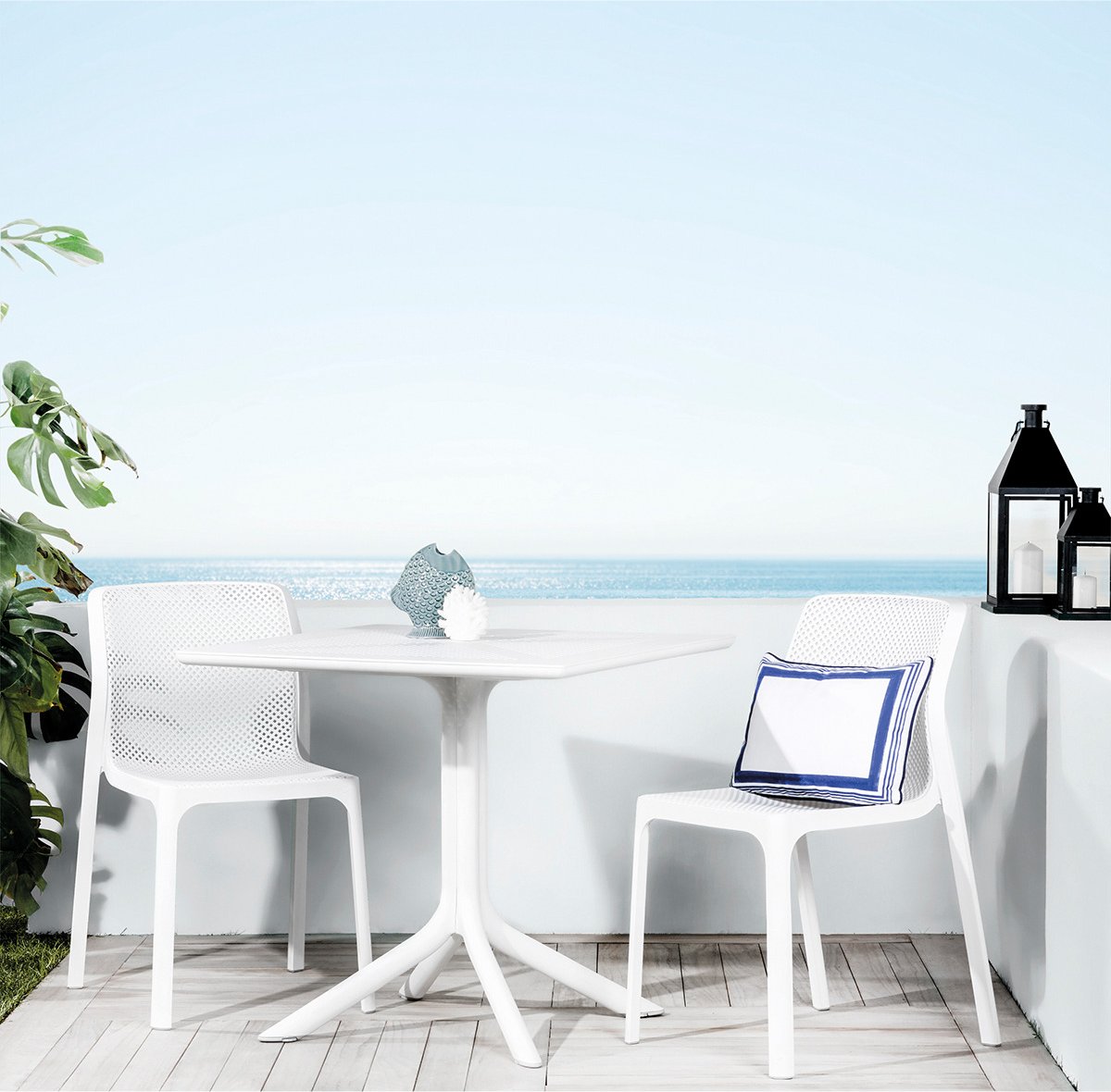 Italian made & designed 2-Seater Bistro Set, UV & weather resistant and ultra-low maintenance. The Bit Clip 3-Piece Bistro Set is the resulting combination of the Bit Bistro Chair and Clip 70 Patio Table. The set is comprised of uniformly coloured commercial grade Polypropylene & Fiberglass Resin that has an attractive matte finish, giving off a very contemporary European vibe.