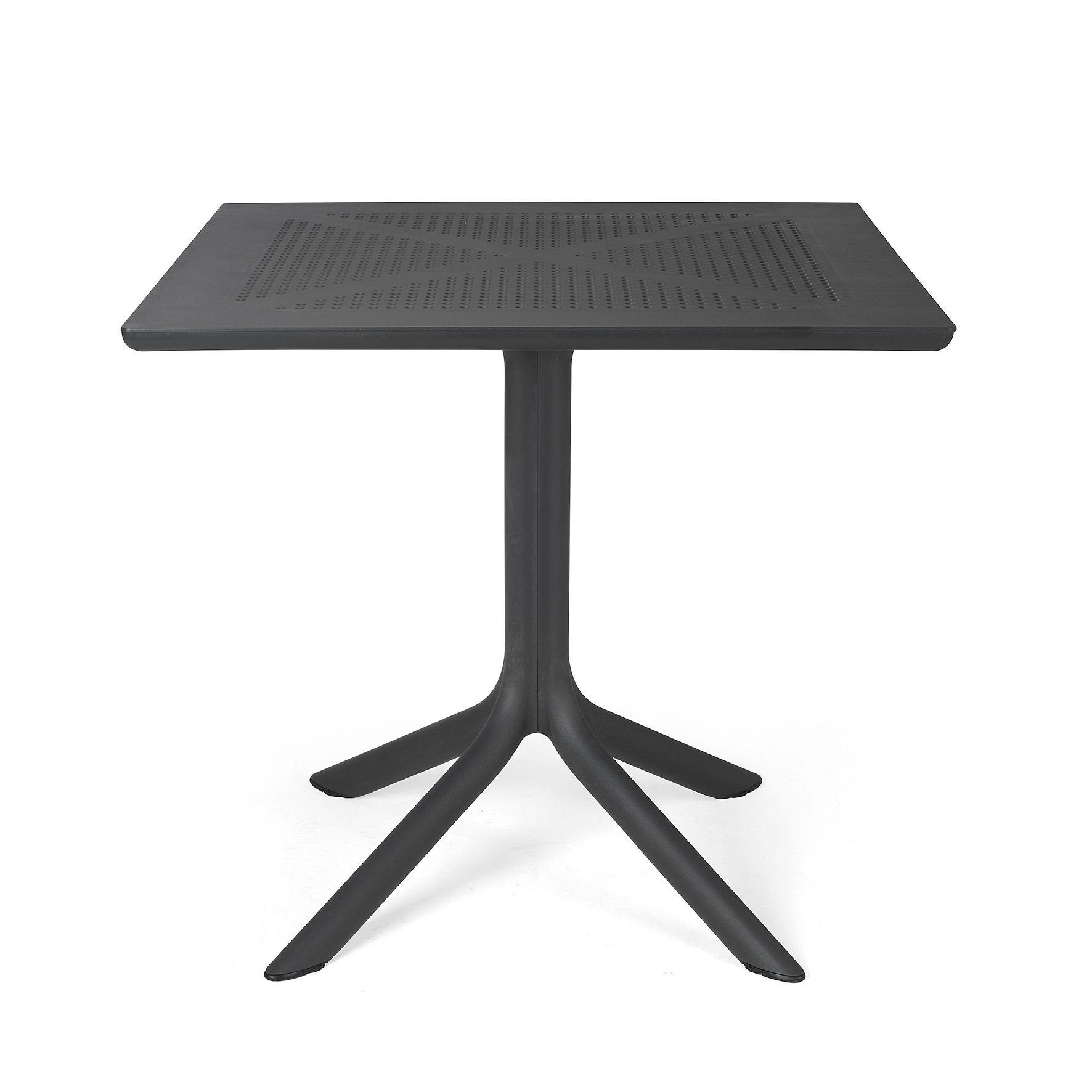 The Clip 80 exudes contemporary European character, with its clean & minimalist look and charming hole punch perforation pattern. Manufactured & designed by NARDI of Italy with weather & UV resistant polypropylene & fiberglass resin. Its four-toe base has a healthy amount of steel which is fully encased in the poly-resin and gives it a bit of grounding. In addition to looking great, its perforated top encourages water runoff. The Clip 80 is stocked in NZ with a colour range that includes Charcoal, White & Taupe. These are all quite flexible neutral colours that mesh well with an array of décor & colour schemes, with any luck one of these will fit into your place perfectly! The Clip 80 features an 800mm X 800mm table top, which comfortably seats four & its central pedestal nature makes it perfect for compact patio areas. If you’ve measured up and still think this might be slightly on the larger size, you can consider its sister table, the Clip 70 – however, when serving four people with plates & cutlery the 700mm X 700mm table top can feel somewhat small. The Clip 80 is commercial grade, carrying a 2-year manufacturer backed commercial use warranty. The table is suitable for commercial use in establishments such as restaurants, cafes, hotels & bars where they’re likely to have a hard life – this fact also generally provides quality conscious residential home shoppers with a bit of peace of mind.