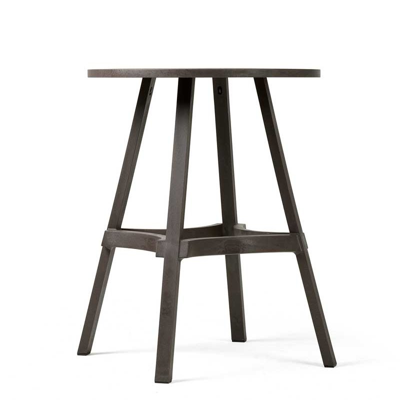 The Combo 70 round outdoor table is comprised of recycled polypropylene & fiberglass resin. It features a straight-line design that breaks into a 70cm diameter round table top. A pedestal-style centre column table base that’s the cumulation of four spoke legs keep the table grounded and steady, while adjustable height feet can be used to level off on uneven surfaces.