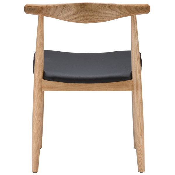 Its characteristic rounded bent backrest provides elbow and back support enabling a variety of sitting positions. It features a practical padded seat cushion upholstered in an easy wipe-to-clean PU vinyl. Constructed with natural Ash wood, each chair will vary slightly in colour, texture and grain pattern, ensuring each piece is unique.