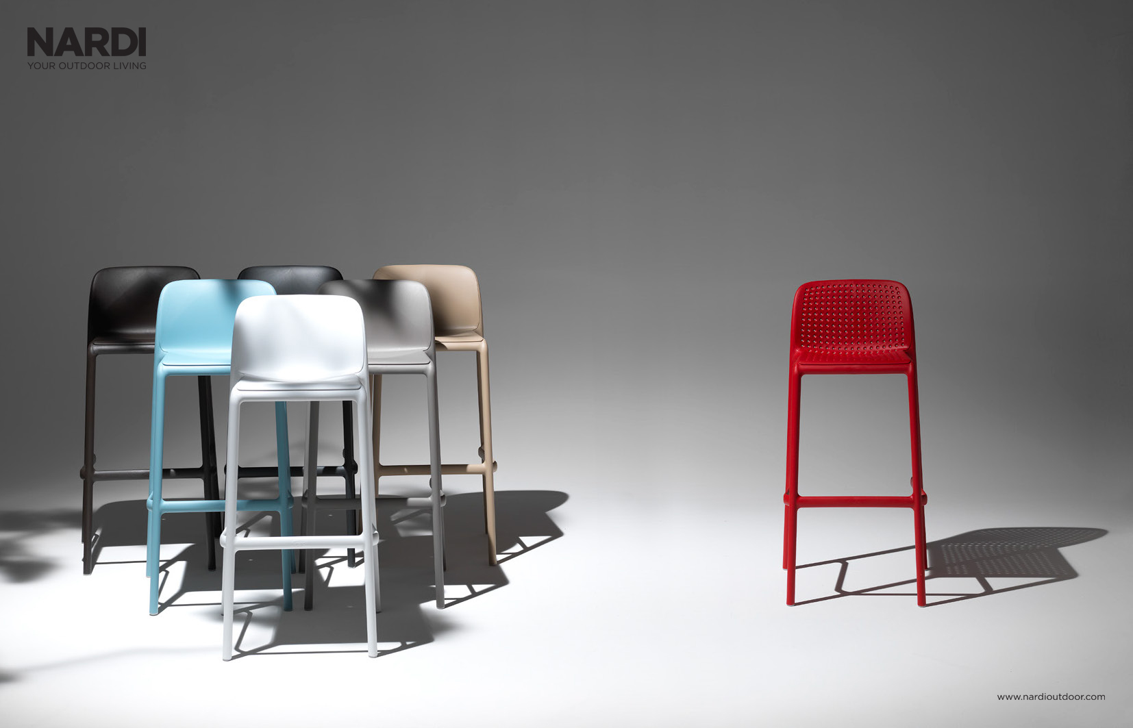The minimal & clean Faro Tall Bar Stool with a back. Designed & manufactured by NARDI of Italy with UV resistant polypropylene & fiberglass resin, making it outdoor safe. It’s beautiful contours and mono-colour matte finish style ensure it has an alluring presence in either your indoor or outdoor space – not a typical find for your average multipurpose bar stool!