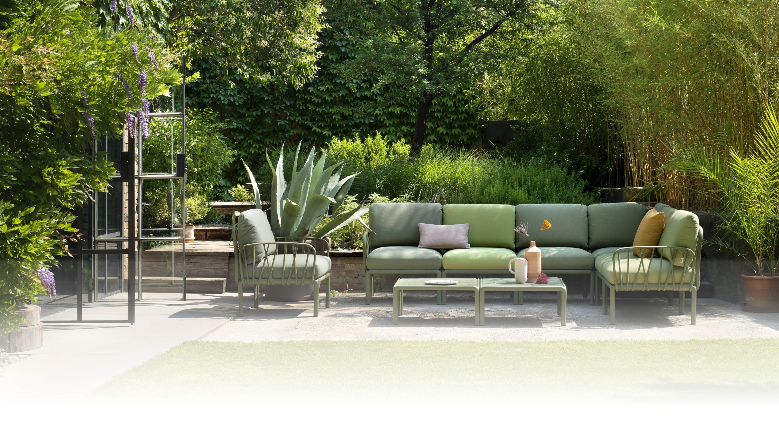Outdoor lounge sets like our best-selling Komodo 5 Modular Outdoor Sofa are finished with a washable coating that allows you to wipe the cushion clean. Using a wet cloth and a washing-up bowl filled with diluted detergent, you can wipe the covers down to remove dirt and debris.