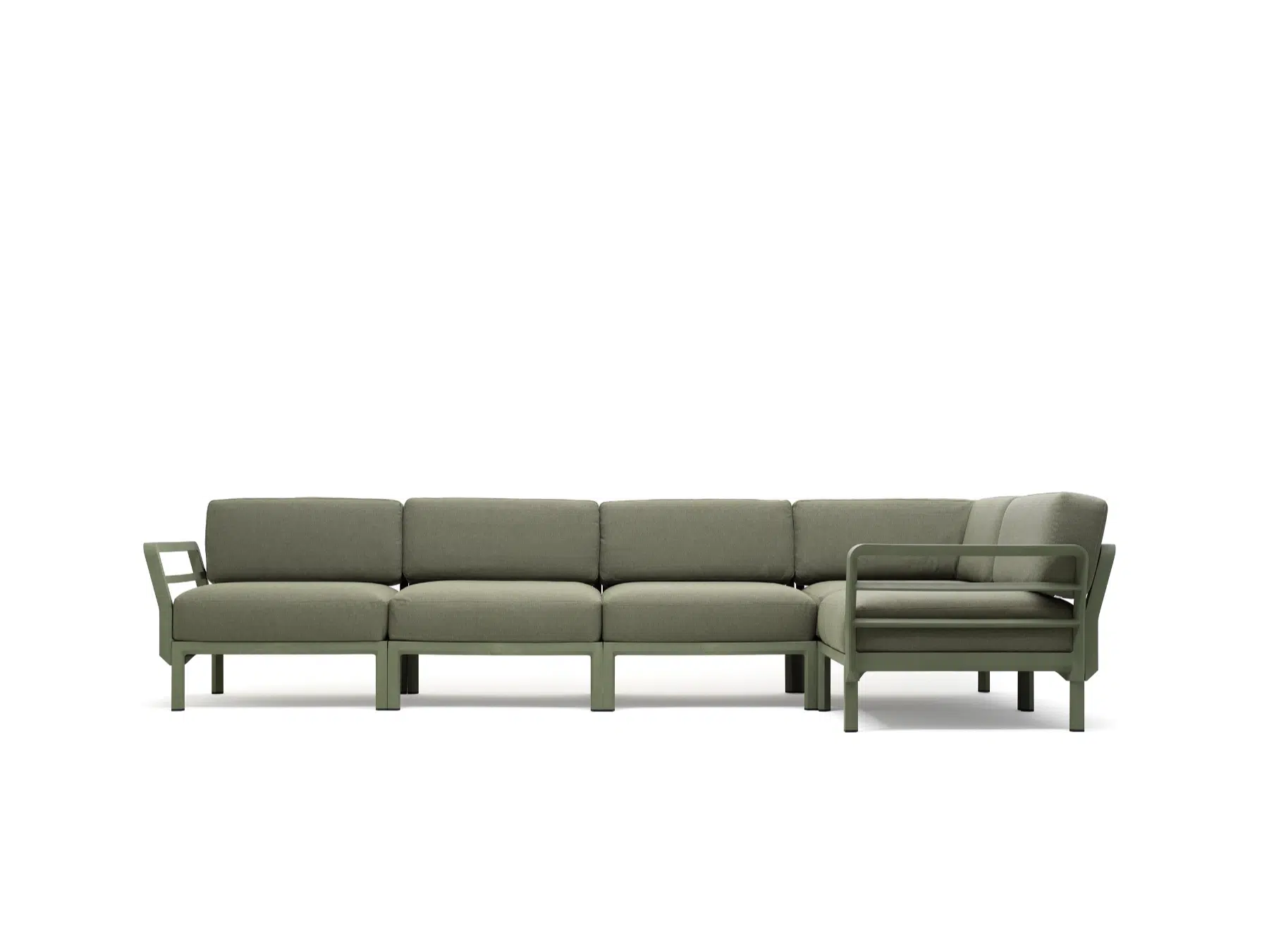 The Maximo 5 Modular L-Shaped Couch combines several modules of the Maximo Sofa Range. Modular system of upholstered outdoor seats and tables.