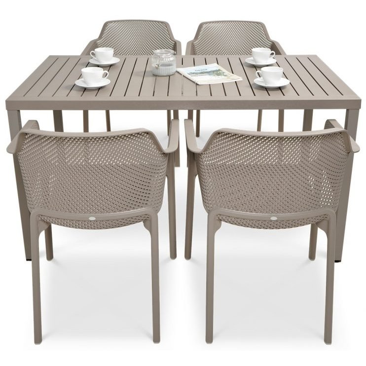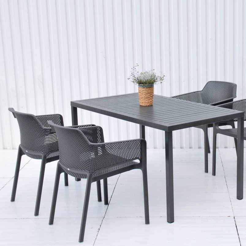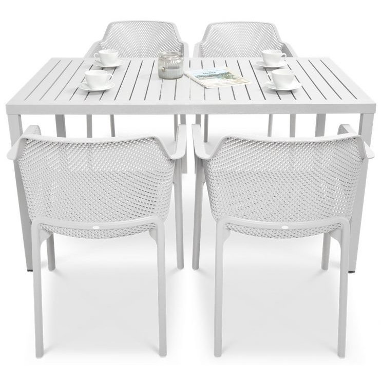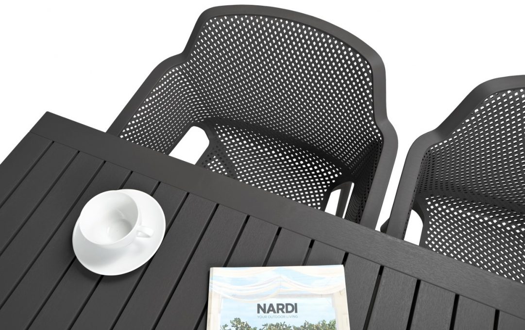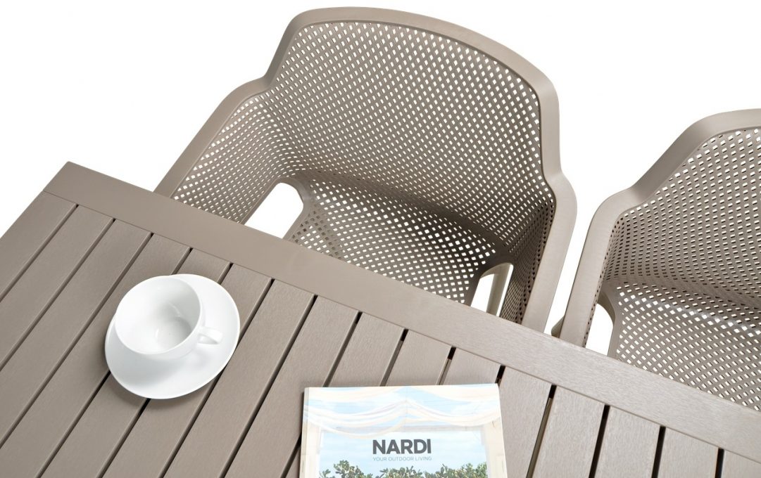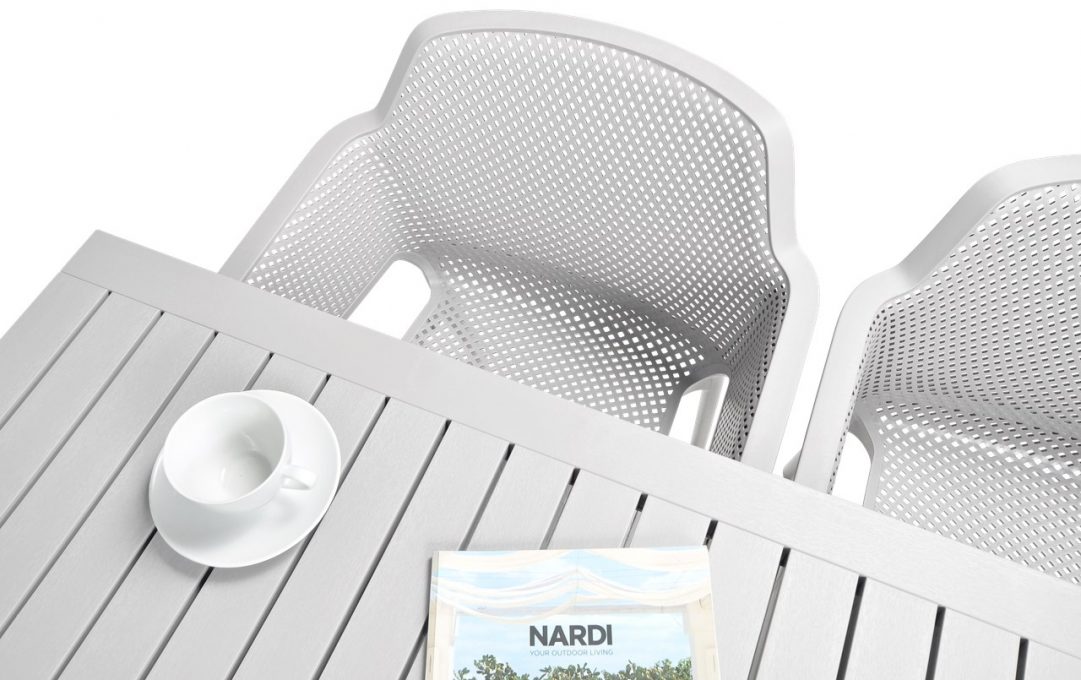 The Net Collection contains a range of outdoor chairs with arms, without arms, outdoor coffee tables & outdoor bar stools. Designed & made by NARDI of Italy.
