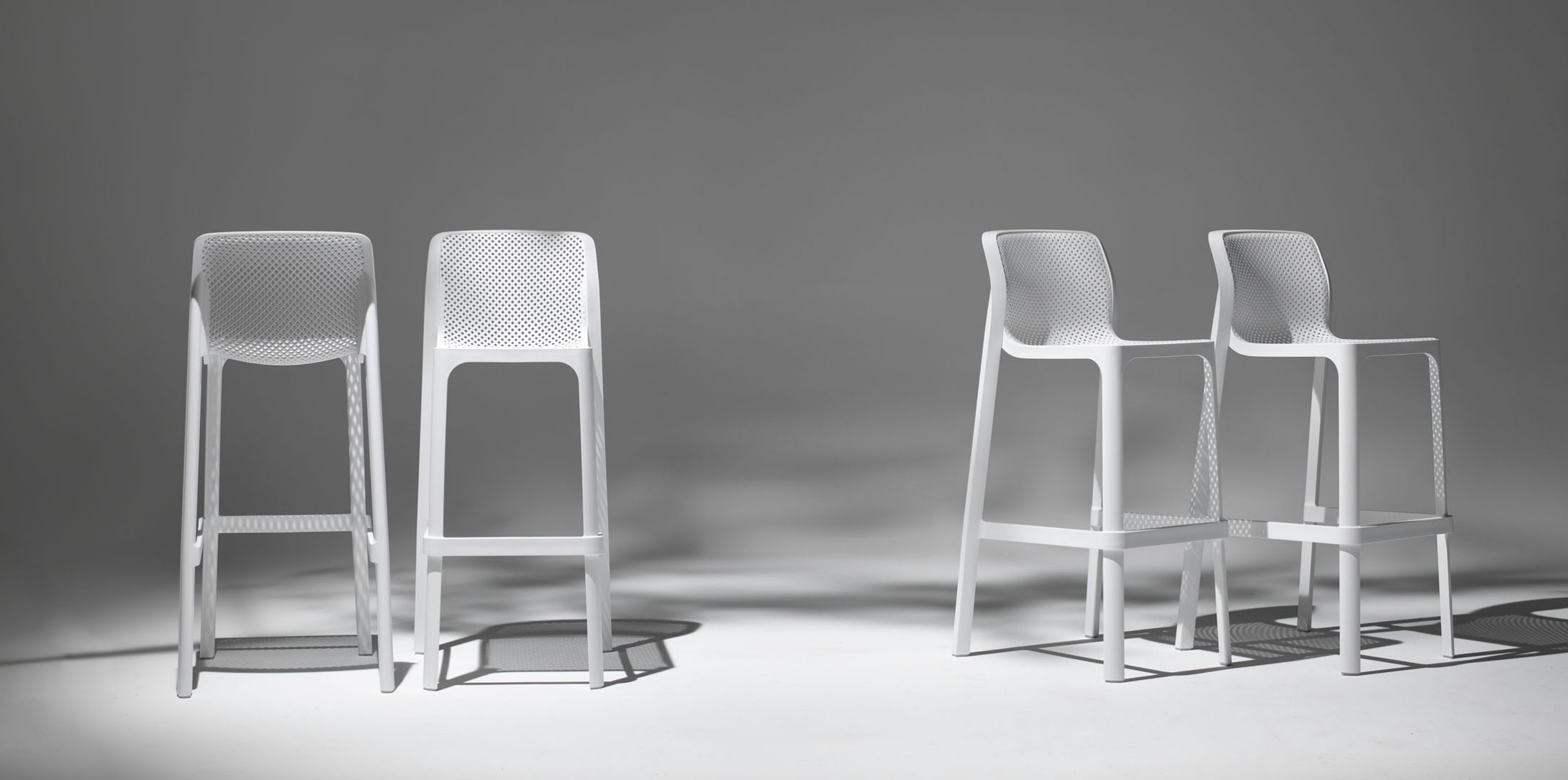 The Net Collection contains a range of outdoor chairs, outdoor bar stools and an outdoor coffee table. Designed & made by NARDI of Italy.