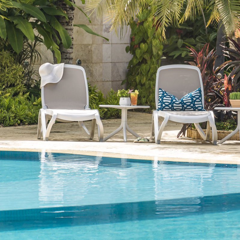 All articles in this set have the primary material polypropylene & fiberglass resin. NARDI has over 25 years of research, development and constant refining of the process with this particular material. The Lounger & Table are commercial grade which gives peace of mind to quality conscious residential consumers while also making them perfect for hotels, motels, public pools, anywhere with a pool, and they’re a huge favourite of cruise ships & cruise liners. The Omega provides comfort and durability while being a beautiful back yard focal point, this set is sure to elevate your rest and relaxation experience.