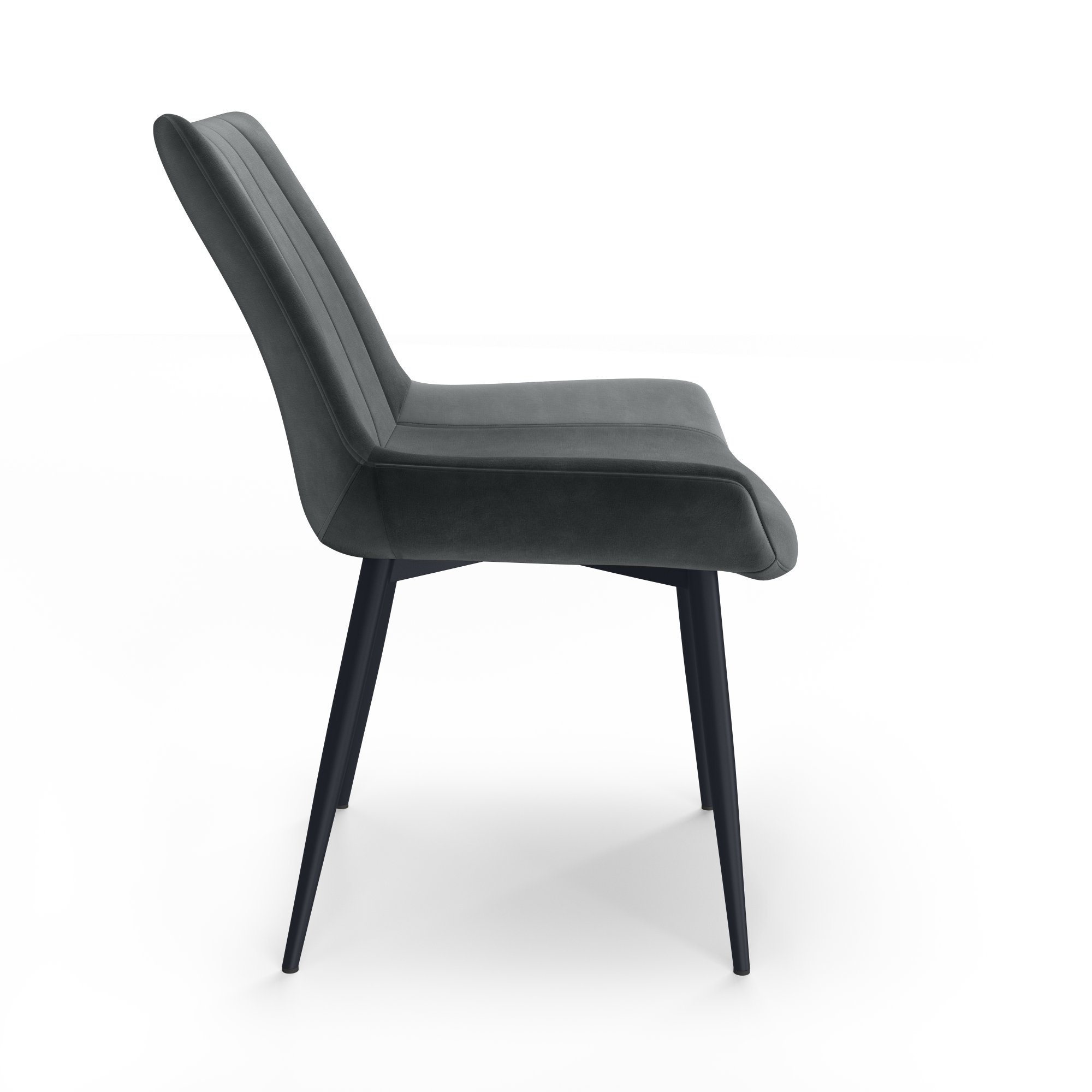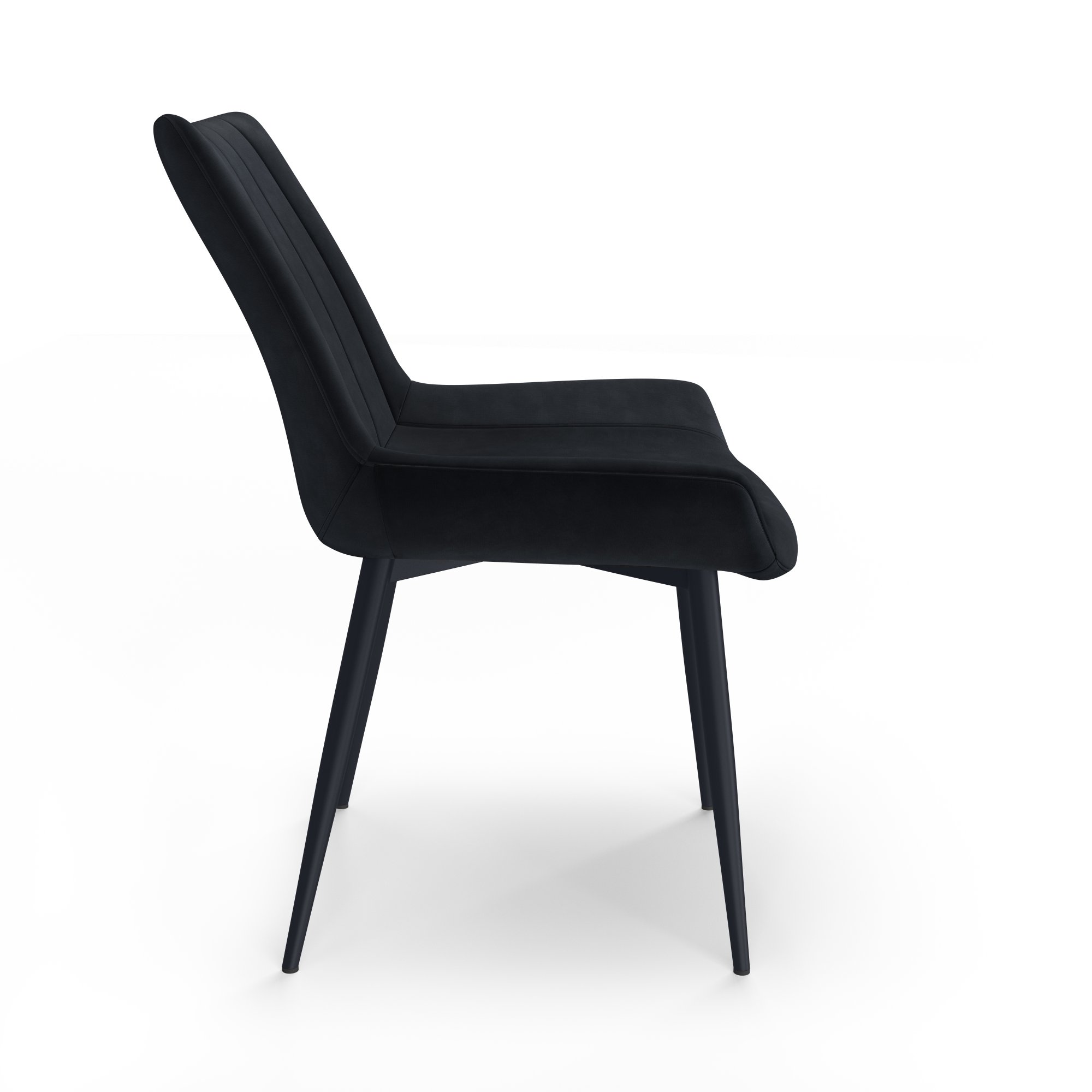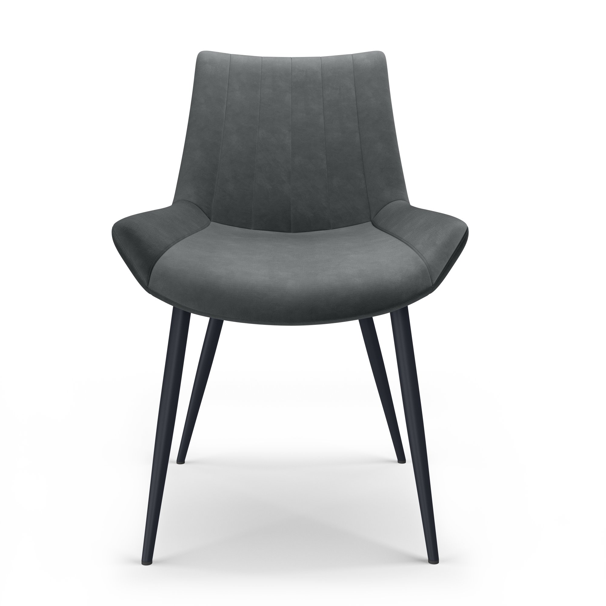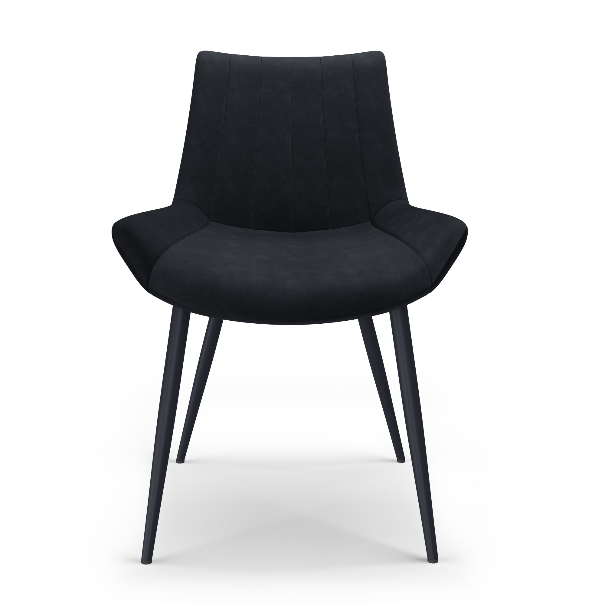 The Palermo Plush Dining Chair is the perfect modern piece for your dining room look. Its powder-coated black tapered legs give it a Mid-Century flare and are capped with non-slip foot gliders, adding extra protection for your dining room floor.