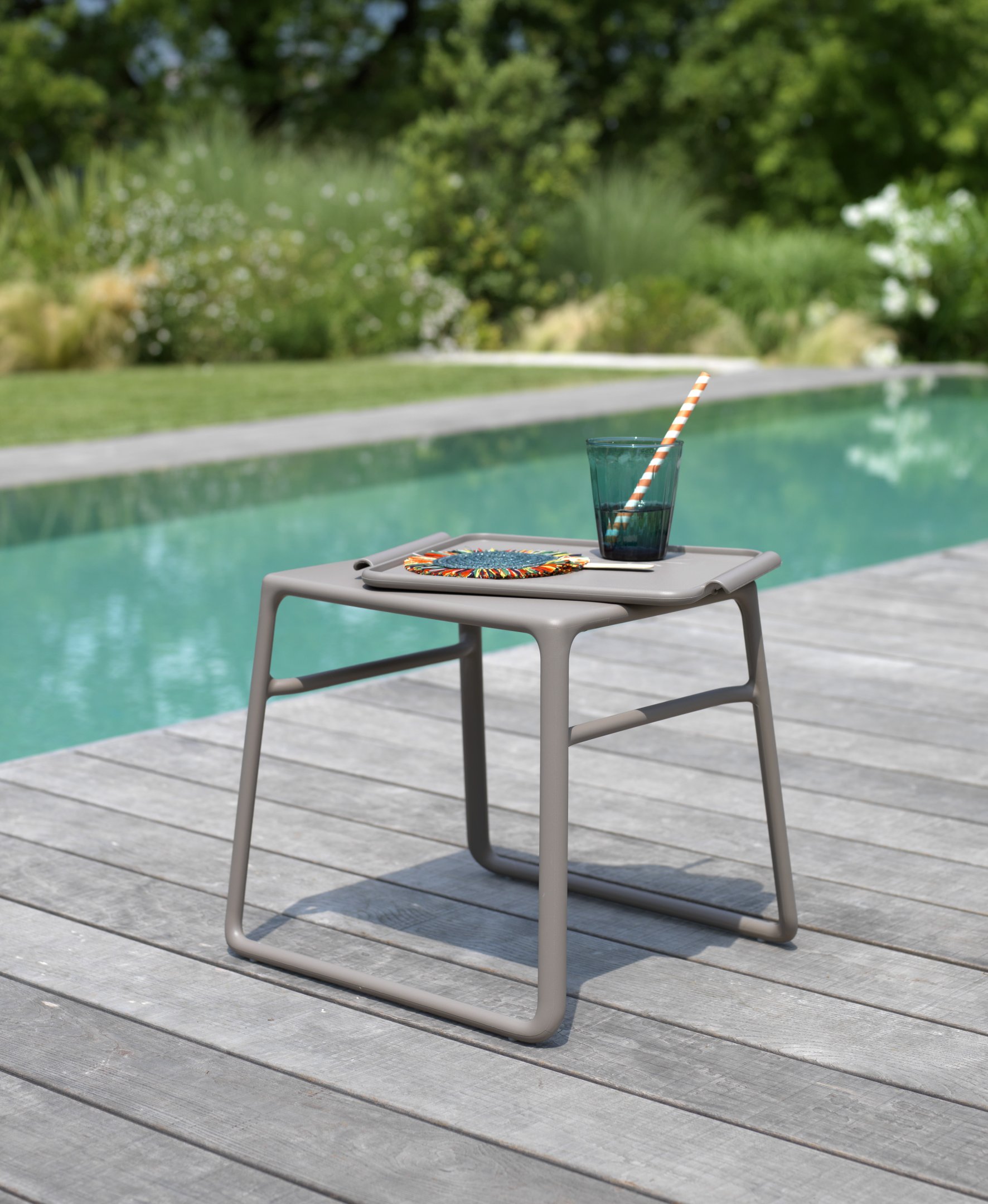 The Pop Side Table / Coffee Table with removable tray, made & designed in Italy by NARDI with weather & UV resistant polypropylene & fiberglass resin. A perfect small outdoor coffee table that’s got a funky modern look, fitting into any outdoor patio or poolside setting or a sleek looking base for a pot plant indoors. It’s ultra-low maintenance, requiring only hand soap & water to clean. The Pop is a favourite among hotels & boutique accommodation due to its aesthetic design and 2-year manufacturer backed commercial grade warranty. Like all NARDI product, it is made from 100% recyclable materials ensuring at the end of its long service there’ll be minimal environmental impact. The Pop’s design is the same style as the Atlantico Sun Lounger, making them a perfect pairing.