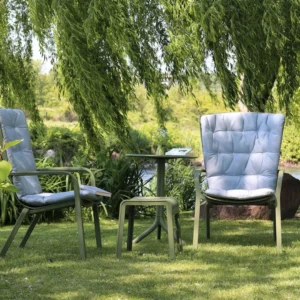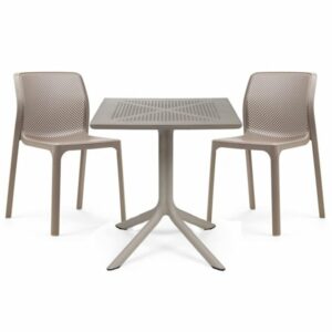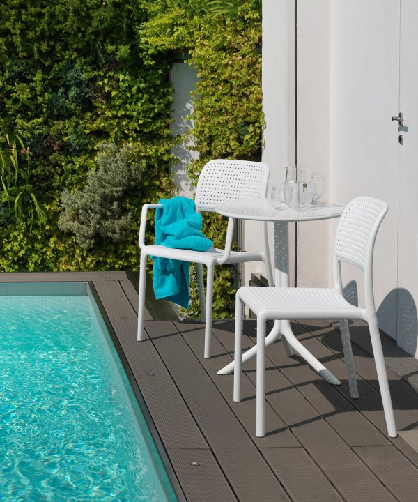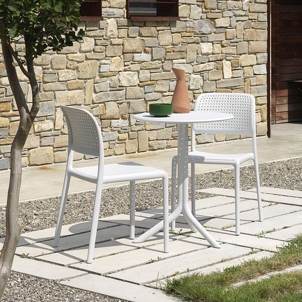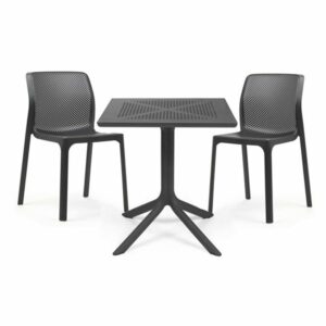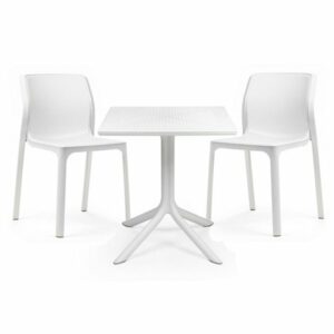 UV & Weather resistant and ultra-low maintenance 3-piece outdoor table and chairs set. Designed & made in Italy with high-quality Polypropylene & Fiberglass resin that’s engineered to withstand the elements.