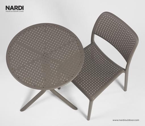 The high-end resin is batch-dyed and treated with an anti ultra-violet (UV) agent, producing collections of chairs & tables that stay vibrant in colour over time, even when they are exposed to atmospheric pollutants and salty sea air (saline) conditions for extended periods.