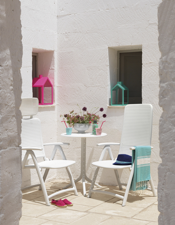 The high-end resin is batch-dyed and treated with an anti ultra-violet (UV) agent, producing collections of chairs & tables that stay vibrant in colour over time, even when they are exposed to atmospheric pollutants and salty sea air (saline) conditions for extended periods.