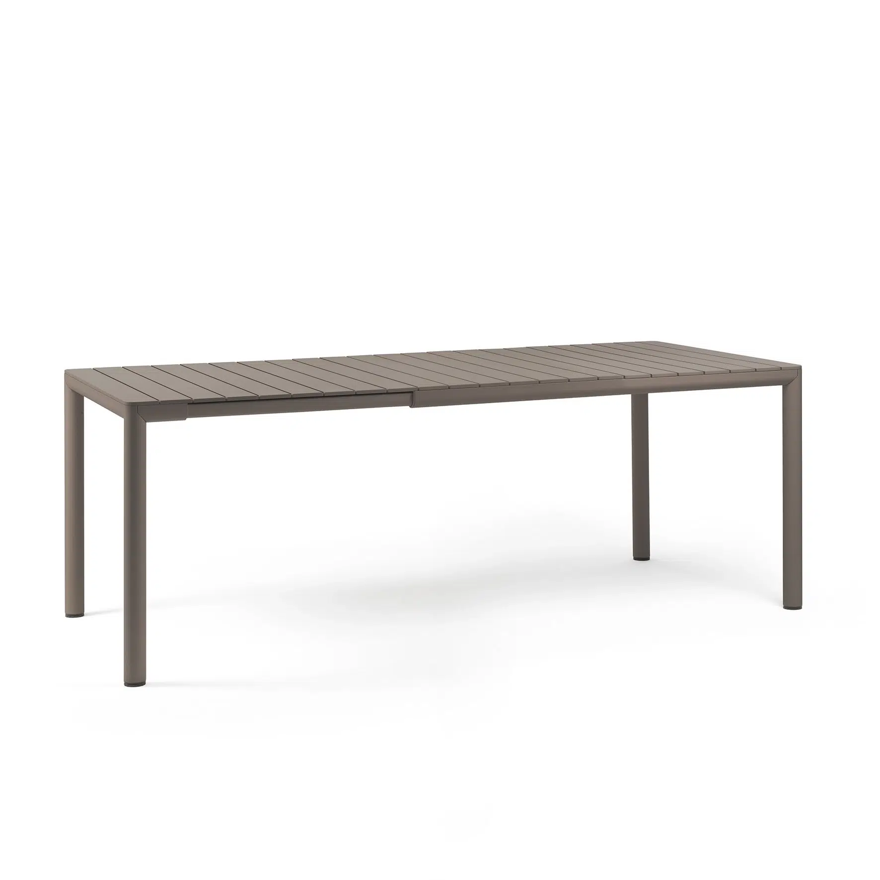The table top is made of UV-resistant fibreglass & polypropylene resin that’s not only durable, but also fully batch dyed ensuring long lasting colour intensity. The powder-coated aluminium frame gives stability and structure, while the table’s matte finish adds a distinctive modern touch. In its native length 147cm the table seats 6, when extended to 211cm the table will comfortably seat 8.